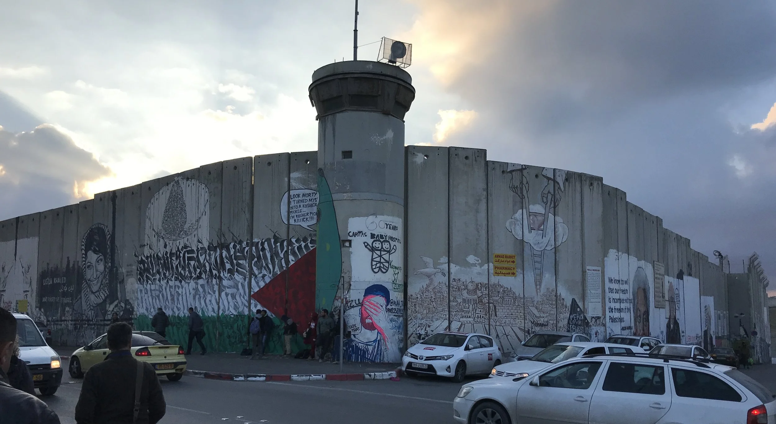 It would be impossible for me to post anything about my trip to Bethlehem today without saying something about the experience of travelling through the check-points, past “the wall”, and into the Palestinian territories. Being in the vicinity of the very space in time where the Word was made flesh was breath taking (in ways I cannot even describe), but seeing the circumstance by which so many are forced to suffer – while we made our way in and our way out – made me want to weep.