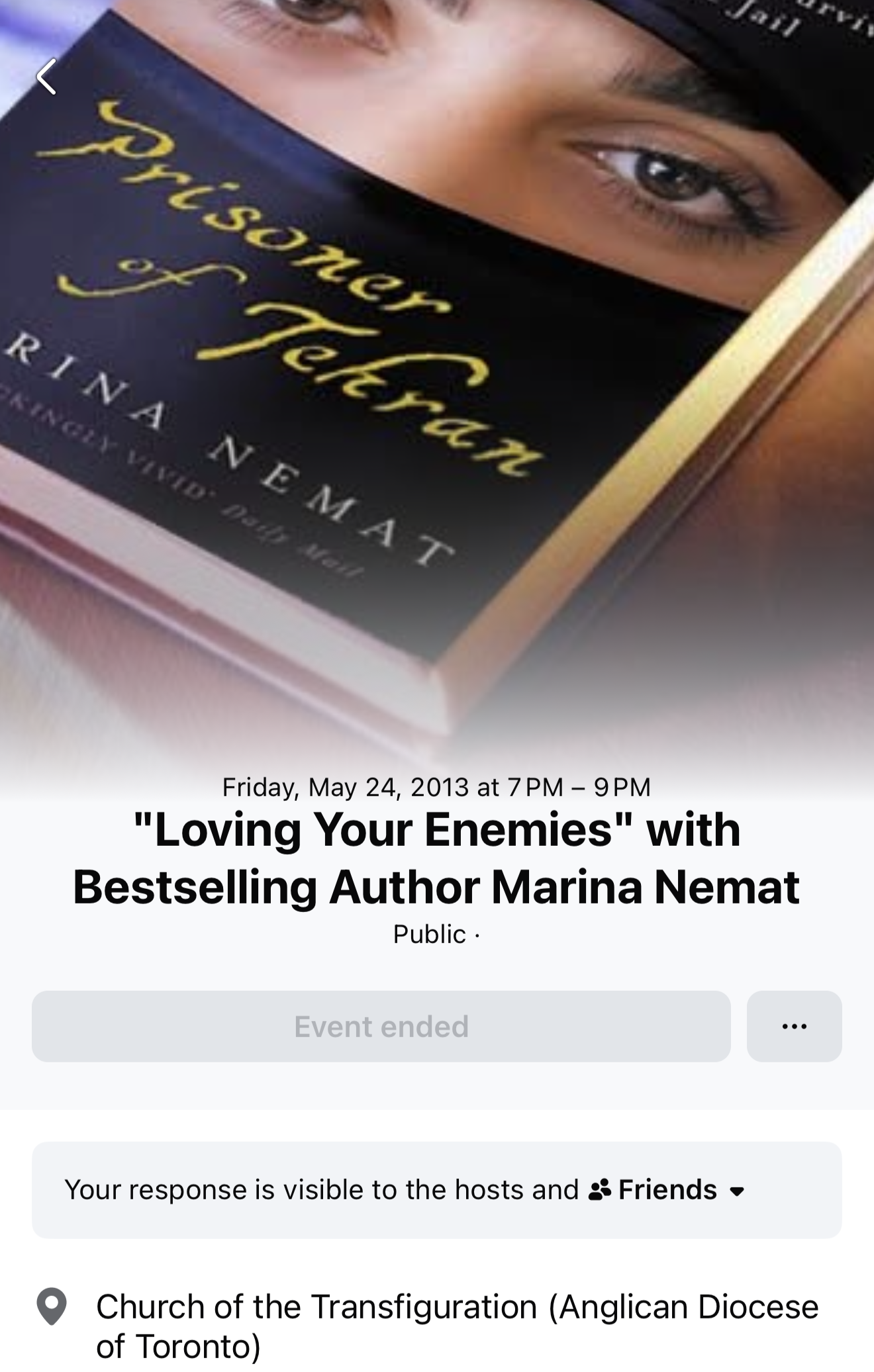 It was taken at Church of the Transfiguration in Toronto, where I was serving as priest-in-charge in 2013. That same spring, the church hosted a public evening with Marina titled “Loving Your Enemies” on May 24, 2013. The event invited people to wrestle with one of Christ’s hardest commands, not as abstraction, but through the witness of someone who had suffered more than most Christians in Canada can imagine.